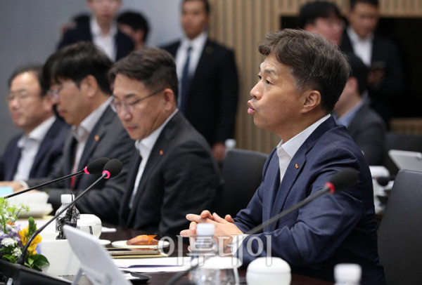 ▲곽노정 SK하이닉스 CEO가 28일 경기 이천 SK하이닉스에서 열린 이재명 더불어민주당 대선후보와의 K-반도체 AI메모리반도체 기업 간담회에서 발언하고 있다. 국회사진취재단