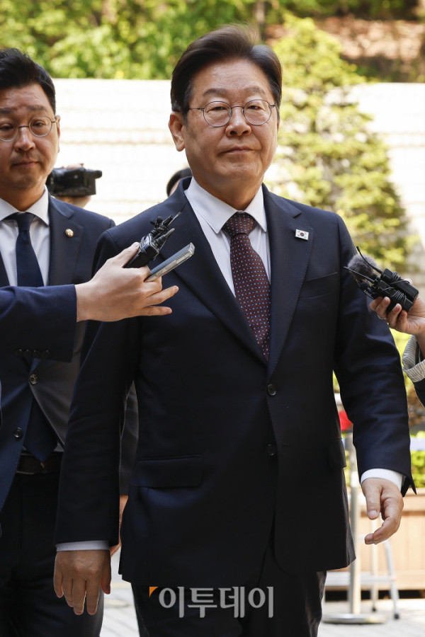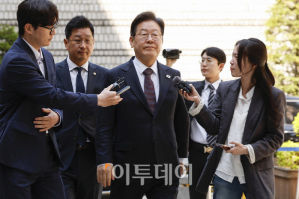 이재명 더불어민주당 대선후보가 29일 서울 서초구 서울중앙지방법원에서 열린 대장동 배임·성남FC 뇌물 1심 속행 공판에 출석하고 있다. 조현호 기자 hyunho@