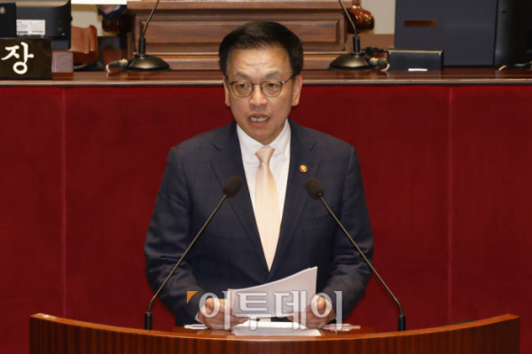 ▲최상목 경제부총리 겸 기획재정부 장관이 28일 서울 여의도 국회에서 열린 예산결산특별위원회 전체회의에서 2025년도 제1회 추가경정예산안 제안설명을 하고 있다. 고이란 기자 photoeran@