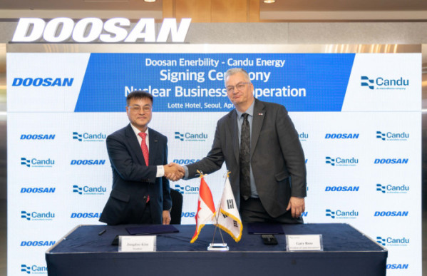 두산에너빌리티는 캐나다 원자력 기업 캔두에너지와 원자력 사업 협력을 위한 우선공급자 협약을 체결했다고 29일 밝혔다. 9개 우선공급자 중 유일한 해외 기업이다.