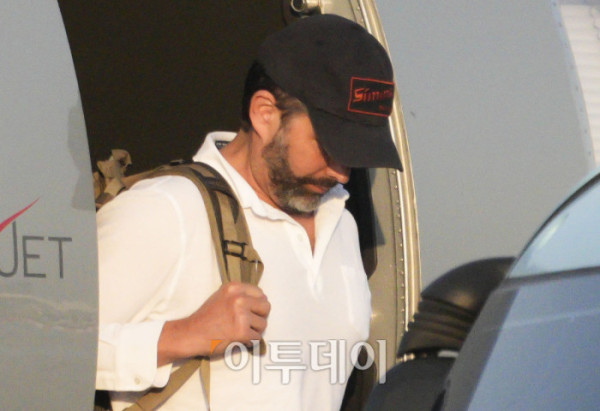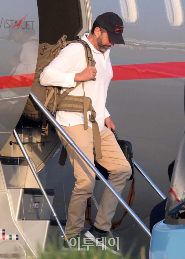 ▲도널드 트럼프 미국 대통령의 장남 트럼프 주니어가 29일 서울 강서구 서울김포비즈니스항공센터를 통해 입국하고 있다. 조현호 기자 hyunho@