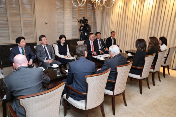 ▲황주호 한국수력원자력 사장(정면 왼쪽에서 네 번째)이 29일 서울 롯데호텔에서 4세대 소형모듈원전(SMR) 개발 선두 주자인 캐나다 아크 클린 테크놀러지(ARC Clean Technology) 관계자와 만나 ‘ARC-100’ 노형 공동개발 및 향후 사업 협력 방안을 논의하고 있다. (사진제공=한국수력원자력)