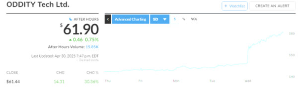 이날 인공지능(AI) 뷰티 플랫폼 오디티 테크 1분기 실적이 시장 전망을 상회하면서 주가가 30.36% 폭등했다. 또한 오디티 테크는 도널드 트럼프 미국 대통령의 관세 역풍에 대해서도 “관리가 가능하다”며 “비용 효율성 개선으로 (관세 역풍을) 크게 상쇄할 것으로 예상된다”며 올해 수익 및 매출 전망치도 상향 조정했다.