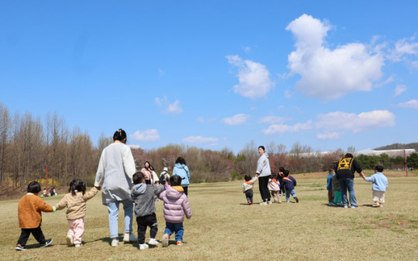 ▲지난달 15일 인천 서구 드림파크 야생화 단지를 찾은 어린이들이 맑은 하늘 아래 이동하고 있다. (연합뉴스)