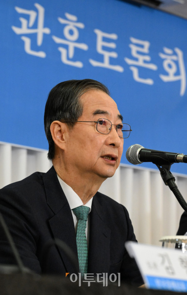한덕수 무소속 대통령선거 예비후보가 6일 서울 중구 코리아나 호텔에서 열린 관훈토론회에서 기조연설을 하고 있다. 국회사진취재단