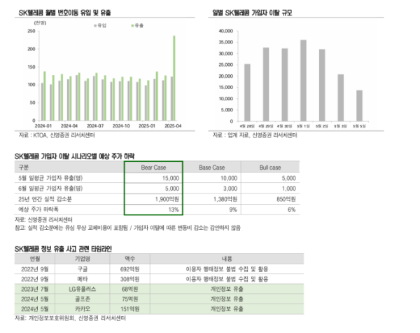 다만 “가입자 이탈 규모가 예상보다 확대되거나, 정부 제재가 장기화될 경우 실적과 주가에 추가 압박이 될 수 있다”고 덧붙였다.