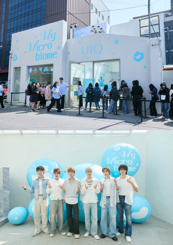 ▲지놈앤컴퍼니의 화장품 브랜드 ‘유이크(www.theuiq.com)’가 서울 성수동에서 팝업스토어를 운영했다. 26일에는 유이크의 전속모델인 ‘라이즈(RIIZE)’가 깜짝 방문해 팬사인회 및 포토콜 행사에 직접 참여했다. (사진제공=지놈앤컴퍼니)