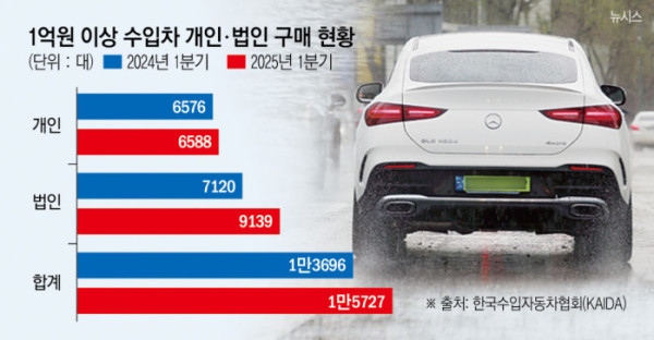 7일 한국수입자동차협회(KAIDA)에 따르면 올해 1분기 국내에서 판매된 1억 원 이상 고가 수입 차량은 총 1만5727대로 조사됐다. 이는 지난해 같은 기간 1만3696대보다 14.83% 늘어난 수치다.