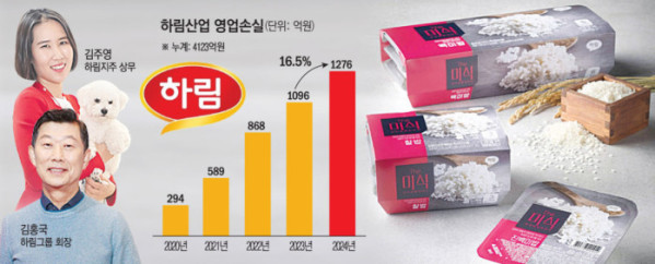 7일 금융감독원 전자공시시스템에 따르면 하림산업의 지난해 영업손실은 1276억 원으로 전년보다 적자 폭이 16.5% 늘었다. 최근 5년간 영업손실이 계속 늘어, 지난해까지 누적 적자가 4123억 원까지 불어났다.