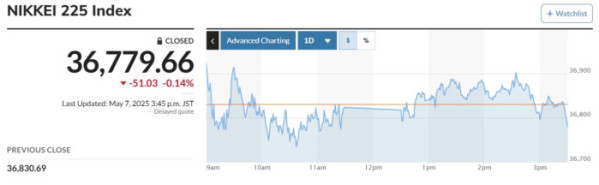 이날 마켓워치에 따르면 일본 증시에서 닛케이225지수는 전날보다 51.03포인트(0.14%) 내려 3만6779.66에 마감했다. 기술주 중심의 토픽스지수도 보합권에 머물렀다. 종가는 전날보다 8.38포인트(0.31%) 오른 2696.16에 거래를 마쳤다.