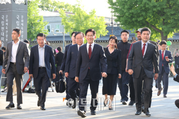 ▲김문수 국민의힘 대선 후보가 7일 서울 종로구 한 음식점에서 한덕수 무소속 대선 후보와 단일화 관련 논의를 위해 들어가고 있다. 조현호 기자 hyunho@