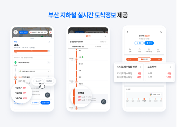 이에 따라 사용자는 열차가 시간표와 다르게 운행되는 경우에도 네이버 지도를 통해 부산도시철도의 실시간 열차 위치와 다음 열차 도착 시간 등 운행 현황을 정확하게 확인할 수 있다. 특히 열차 증편, 지연, 운행 시간 연장 등과 같은 이례적인 상황도 실시간으로 안내돼 보다 정확하고 편리한 이동 계획 수립이 가능해질 전망이다. 또 실시간 지하철 정보 서비스는 영어, 중국어, 일본어 등 다국어로도 제공돼 부산 지역을 방문하는 외국인 관광객도 유용하게 활용할 수 있을 것으로 기대된다.