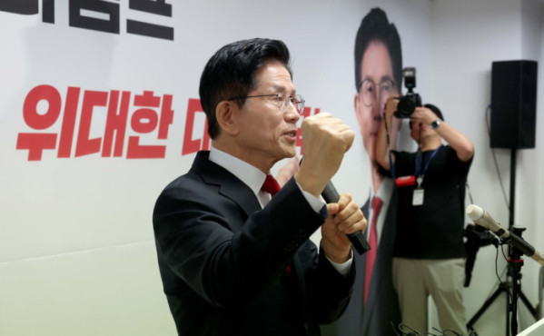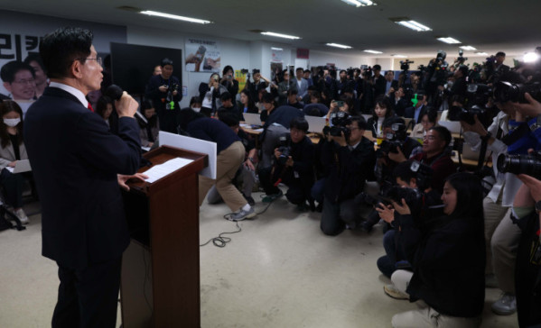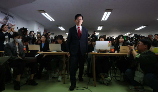 ▲김문수 국민의힘 대선후보가 8일 서울 여의도 선거캠프 사무실에서 긴급 기자회견을 갖고 후보 단일화에 관한 입장을 밝히기 위해 단상으로 향하고 있다. 신태현 기자 holjjak@