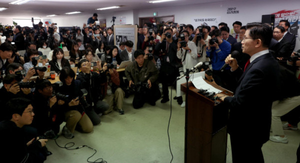 김문수 국민의힘 대선 후보가 8일 서울 여의도 선거캠프 사무실에서 긴급 기자회견을 갖고 “대선 후보로 당선된 저 김문수를 끌어내리려는 당 지도부의 작업을 어젯밤 늦게 확인했다”며 후보 단일화에 관한 입장을 밝혔다. 김 후보는 이 자리에서 한덕수 무소속 대선 예비후보와의 단일화를 압박하고 있는 국민의힘 지도부를 향해 "후보 단일화란 미명으로 정당한 대선 후보를 끌어내리려는 작업에서 손 떼라”면서 당무우선권을 발동한다고 말했다. 김 후보는 “시너지를 위해 각 후보간 일주일 동안 선거운동을 하자"며 "이후 다음주 수요일(14일) 방송토론, 목~금요일 (15~16일) 여론조사를 통해 단일화 하자”고 제안했다.
