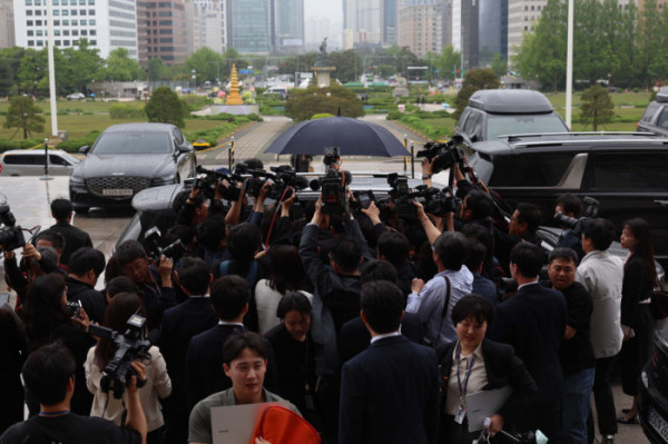 ▲김문수 국민의힘 대선후보가 9일 서울 여의도 국회에서 열린 국민의힘 의원총회에서 발언대로 향하고 있다. 신태현 기자 holjjak@