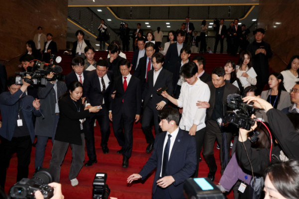 ▲김문수 국민의힘 대선후보가 9일 서울 여의도 국회에서 열린 국민의힘 의원총회에서 권영세 비대위원장이 “대단히 실망스럽다”고 발언한뒤 퇴장하자 국회를 나서고 있다. 신태현 기자 holjjak@