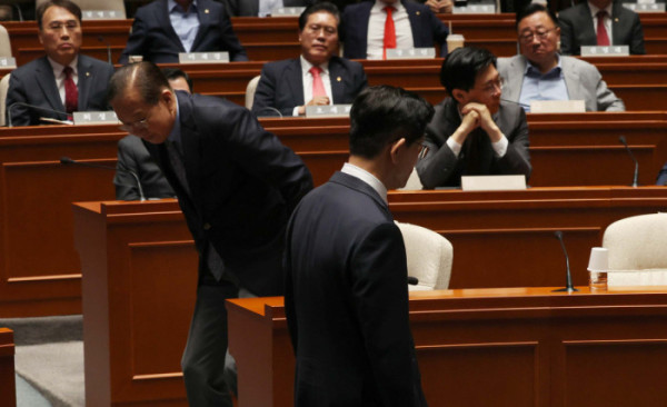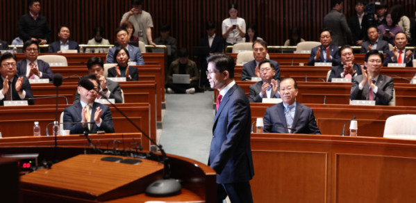 ▲김문수 국민의힘 대선후보가 9일 서울 여의도 국회에서 열린 국민의힘 의원총회에서 권영세 비대위원장이 “대단히 실망스럽다”고 발언한뒤 퇴장하자 의총장을 나서고 있다. 신태현 기자 holjjak@