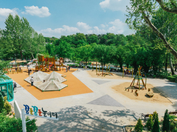 '꿈틀꿈틀 정원놀이터'로 이름 붙여진 정원형 놀이터는 울퉁불퉁한 자연형 지형과 부드러운 곡선의 놀이 구조물을 활용해 아이들의 상상력과 신체 활동을 동시에 자극할 수 있도록 설계됐다.