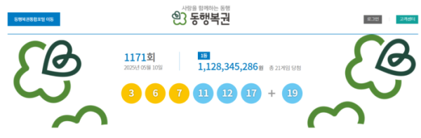 로또복권 운영사 동행복권은 제1171회 로또복권 추첨에서 ‘3, 6, 7, 11, 12, 17’이 1등 당첨번호로 뽑혔다고 10일 밝혔다.