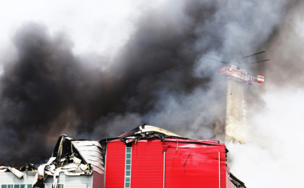 ▲13일 경기도 이천시 부발읍 소재 대형 물류창고에서 불이 나 소방헬기가 진화작업을 하고 있다. (연합뉴스)