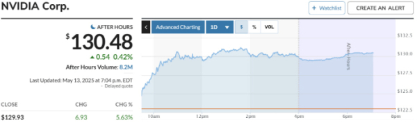 엔비디아 주가는 이날 5.63% 뛰었다. 엔비디아가 사우디아라비아 정부계 펀드가 소유한 AI 스타트업 기업 휴메인과의 업무 제휴를 발표한 것이 주가에 호재로 작용했다. 사우디가 추진하는 해외 투자 지원을 통한 AI 개발과 클라우드 컴퓨팅 인프라 강화를 위한 계획의 일환이다. 엔비디아는 사우디에서 수십만 개의 AI 반도체를 판매할 계획이다. 1차로 AI용 차세대 반도체 ‘블랙웰’ 1만8000개를 휴메인에 공급한다.