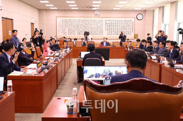 14일 서울 여의도 국회에서 열린 법제사법위원회 전체회의에서 야당 주도로 허위사실 공표죄의 요건 중 '행위'를 삭제하는 내용의 공직선거법 개정안을 의결하고 있다. 한편 이날 법사위에서 열린 조희대 대법원장 등 사법부의 대선개입 의혹 진상규명 청문회에 증인으로 채택된 조 대법원장 등 대법관 12명과 대법원 수석·선임재판연구관, 대법원장 비서실장, 법원행정처 사법정보화실장은 불출석 사유서를 제출했다. 고이란 기자 photoeran@