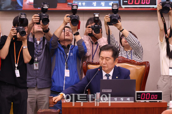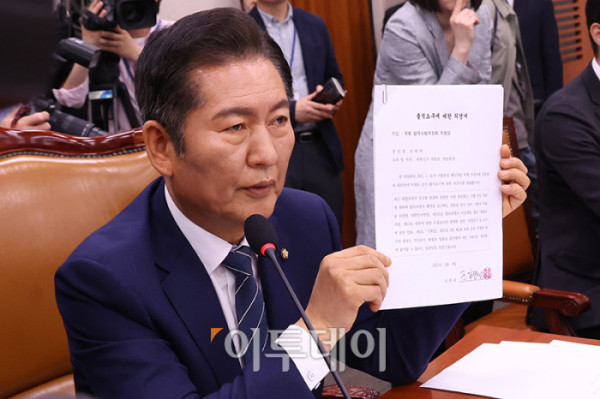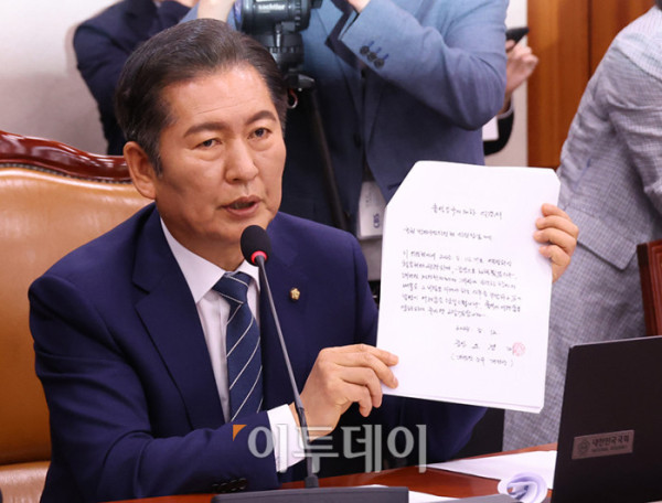 ▲14일 서울 여의도 국회에서 열린 법제사법위원회 전체회의에서 정청래 위원장이 조희대 대법원장 등 사법부의 대선개입 의혹 진상규명 청문회와 관련해 대법관들의 불출석 사유서를 보여주고 있다. 고이란 기자 photoeran@