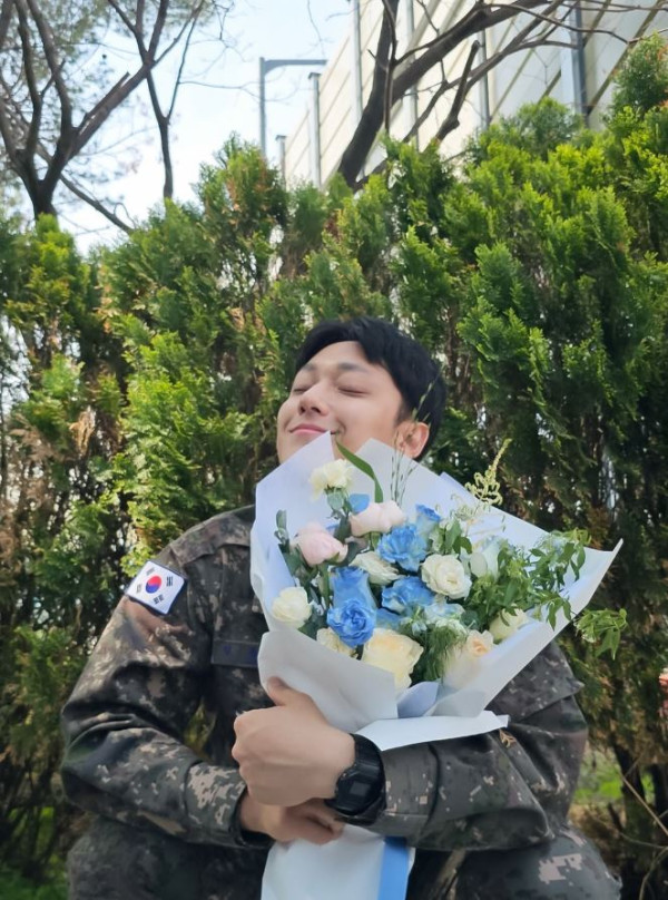 이도현은 군복을 입고 꽃을 든 채 눈을 감고 미소를 짓고 있는 자신의 사진을 함께 올렸다.