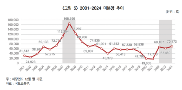▲2001년 이후 미분양 추이. (자료제공=건설산업연구원)