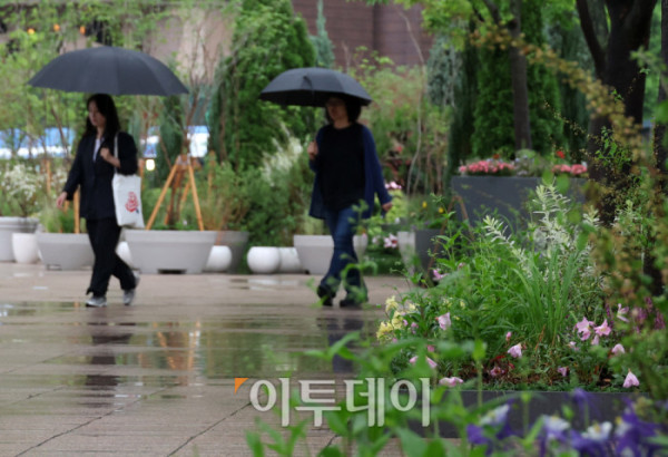 ▲서울을 비롯한 중부지방에 소나기가 내리는 16일 서울 중구 서울광장 인근에 우산을 쓴 시민들이 발걸음을 재촉하고 있다. 고이란 기자 photoeran@ (이투데이DB)