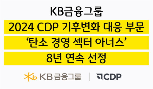 KB금융그룹은 탄소정보공개 프로젝트(CDP) 한국위원회가 국내 산업별 '기후변화 대응 부문 우수 기업'에게 수여하는 '탄소경영 섹터 아너스'에 8년 연속 선정됐다고 19일 밝혔다.