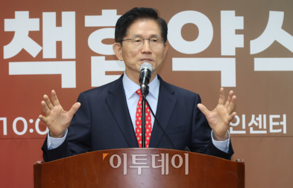 ▲조강훈 한국예술문화단체총연합회장이 20일 서울 양천구 대한민국예술인센터에서 열린 한국예술문화단체총연합회-국민의힘 정책협약식에서 환영사를 하고 있다. 조현호 기자 hyunho@