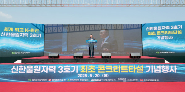 한수원은 20일 신한울3·4호기 건설 현장에서 신한울3호기의 기초지반 상부에 콘크리트를 처음으로 타설했다고 밝혔다. 이 작업은 향후 원자력발전소 내 모든 건물의 구조물과 내부 공사의 시작을 의미한다.
