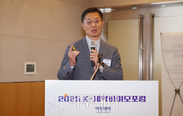 김창오 세브란스병원 노년내과 교수가 20일 서울 여의도 FKI타워 컨퍼런스센터에서 열린 ‘2025 K-제약바이오포럼’에서 ‘노년기 질환 예방관리, 대한민국 미래를 위한 선택’을 주제로 강연하고 있다. 이투데이가 ‘헬시에이징(Healthy Ageing) 2025-모두를 위한 건강한 노화’를 주제로 마련한 올해 K-제약바이오포럼에선 노인성 질환 예방을 비롯해 항노화, 저속노화, 에이징 테크(Ageing-tech) 등 다양한 분야의 전문가들이 참여해 건강한 노화를 위한 방안을 제시했다.