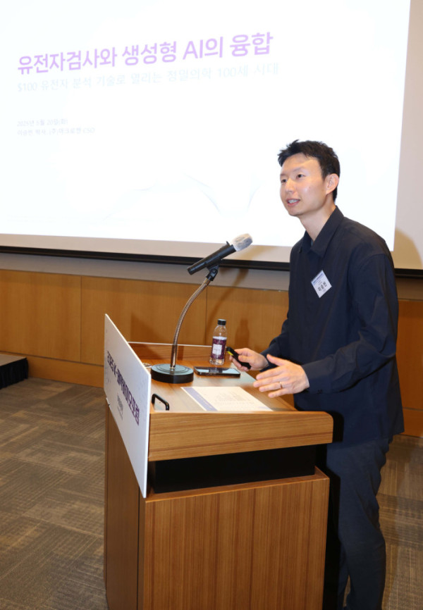 이승빈 마크로젠 최고과학책임자(CSO)는 20일 서울 여의도 FKI타워 콘퍼런스센터에서 이투데이가 개최한 ‘2025 K-제약바이오포럼’에서 ‘유전검사와 생성형 AI의 융합: $100 유전자 분석 기술로 열리는 정밀 의학 100세 시대’ 발표를 진행했다. 이 CSO는 “DNA를 활용하면 자신의 건강 취약점을 빠르게 파악하고, 이에 기반을 둔 효과적인 질병 예방이 가능해질 것”이라고 전망했다.