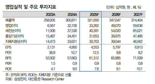 류형근 대신증권 연구원은 “현재 삼성전자는 밸류에이션 부담이 크지 않고 주가에 리스크가 상당 부분 반영된 상태”라며 “기술 리더십 회복 가능성에 대한 의문이 여전히 존재하지만, 체질 개선을 위한 변화가 시작한 만큼 하반기로 갈수록 그 흔적이 입증될 것”이라고 밝혔다.