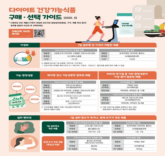 21일 한국소비자원은 시중에서 판매 중인 다이어트 건강기능식품 12개 제품의 품질·안전성 시험평가 결과를 공개했다. 시험평가 결과, 모든 제품의 체지방 감소 기능 성분 함량이 1일 섭취량 기준에 부합했다. 제품에 표시된 1일 섭취량 기준으로 가르시니아캄보지아 추출물 6개 제품은 기능 성분(총(-)-HCA) 함량 652~999㎎, 녹차 추출물 6개 제품은 기능 성분(카테킨) 함량 289~467㎎으로 모두 관련 기준을 충족했다. 시험 대상 12개 중 8개 제품은 비타민·무기질 및 기타 기능 성분을 최대 12종까지 함유하고 있었다. 모두 성분별 함량이 건강기능식품 기준을 충족했다.