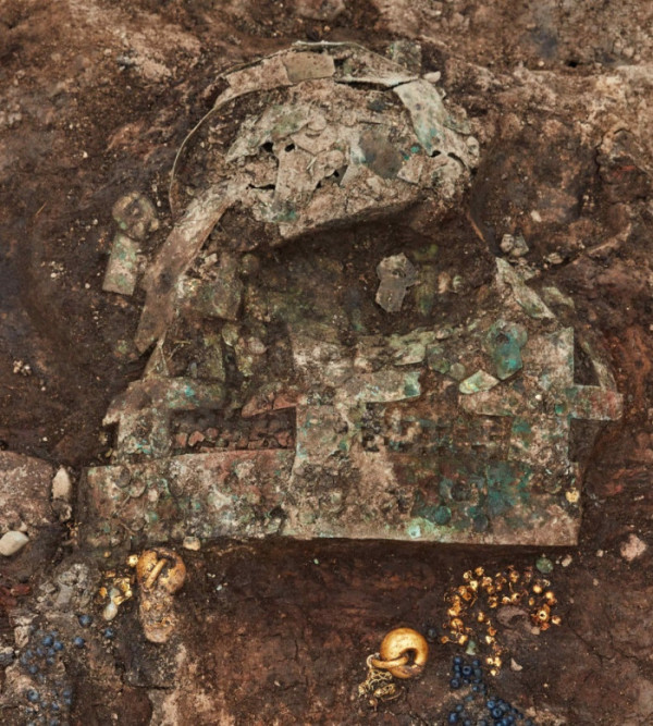 ▲경주 황남동 120-2호분 금동관 출토상태 (국가유산청)