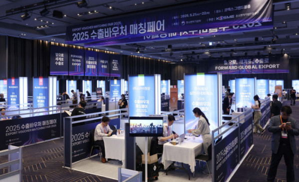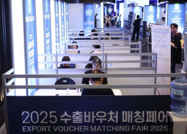 ▲21일 서울 강남구 코엑스에서 열린 ‘2025 수출바우처 매칭페어’에서 참가기업들이 상담을 하고 있다. 중소벤처기업부와 중소벤처기업진흥공단 주최로 22일 까지 진행되는 수출바우처 매칭페어는 중소기업의 해외 시장 진출을 지원하고, 수출 역량을 강화하기 위해 마련된 네트워킹 행사다. 올해는 참가기업 440개사, 수행기관 120개사, 해외바이어 40개사가 참여했다. 신태현 기자 holjjak@
