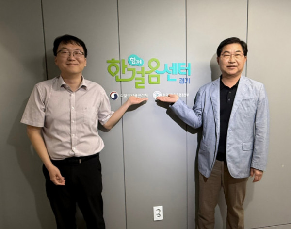 ▲강백원 식품의약품안전처 마약안전기획관(오른쪽)이 21일 경기 함께한걸음센터에 방문해 기념 사진을 촬영 중이다. (식품의약품안전처)