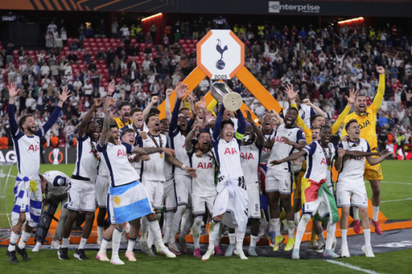 경기 직후 열린 시상식에서 태극기를 허리에 두른 손흥민은 유로파리그 우승컵을 번쩍 들어 올리며 팀원들과 함께 환호했다.