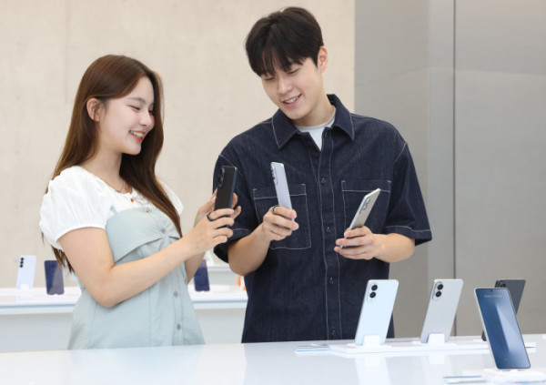 ▲'삼성 강남'에서 '갤럭시 S25 엣지'의 초슬림 디자인을 체험하는 모습 (사진제공-삼성전자)