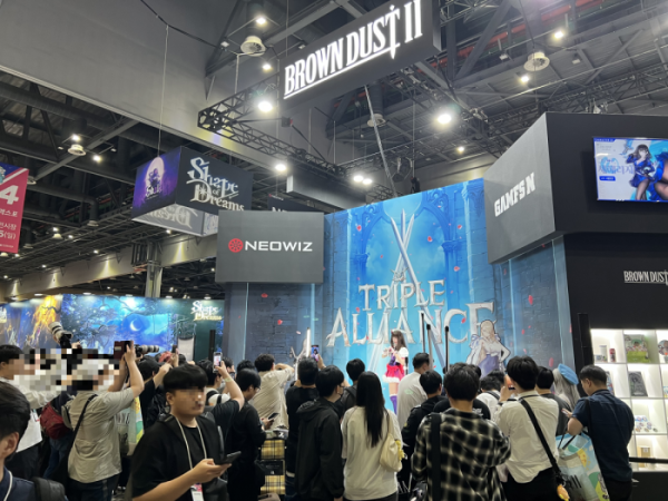 이외에도 네오위즈는 게임 내 캐릭터로 분장한 아이돌 콘셉트 코스플레이어들을 통해 방문객들의 주목을 받았습니다. 해당 코스어들이 행사를 진행할 때는 길을 지나가기가 힘들 정도로 북적거리는 등 플레이엑스포에서 가장 인파가 몰렸죠.