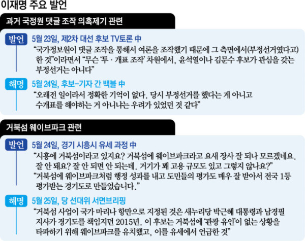 관련해 이재명 후보는 "오래 전 일이어서 정확한 기억이 없다"며 "당시 부정선거를 했다는 것이 아니고, 수개표를 해야하는 게 아니냔 우려가 있었던 것 같다"라고 해명했다.