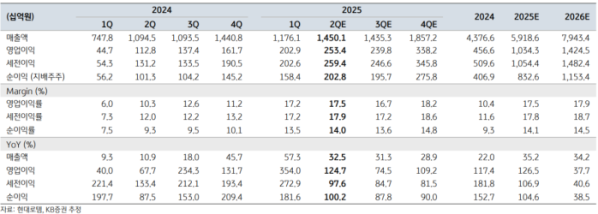 특히 분기 영업이익이 2000억 원을 돌파한 건 창사 이래 처음으로, 앞으로는 분기 영업이익이 2000억 원 아래로 떨어지는 일이 없을 것으로 KB증권은 예상했다. 영업이익률은 17.2%를 나타냈다.