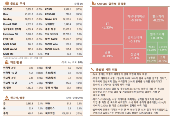 뉴욕증시, 트럼프 ‘EU 관세 50%’ 위협에 동반 하락 마감