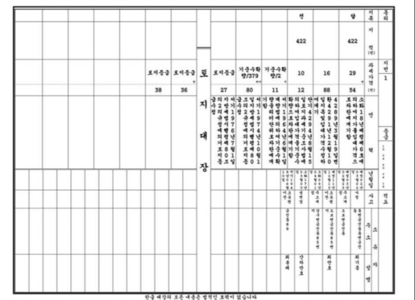 ▲디지털화된 토지대장 (한국지역정보개발원)