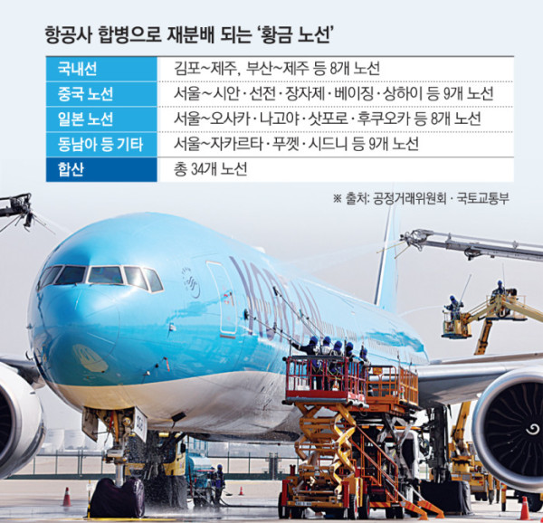 26일 항공업계에 따르면 국토교통부는 올해 상반기 중으로 대한항공과 아시아나항공의 기업결합으로 인해 두 항공사의 점유율이 50%가 넘는 노선 총 34개를 LCC에 배분할 계획이다. 주요 노선으로는 국내선(김포, 부산~제주)을 비롯해 △서울~시안·선전·장자제·베이징·상하이·톈진·창사 △부산~베이징·칭다오 △서울~오사카·나고야·삿포로·후쿠오카 △부산~오사카·나고야·삿포로·후쿠오카 △서울~자카르타 등이다. 해당 노선들은 여객 수요가 많아 황금노선으로 꼽히는 곳이다.