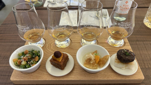 특히 이번 팝업의 핵심은 국내 한식 장인들과 협업해 개발한 ‘발베니 페어링 세트’다. 이날 현장에서는 발베니 12·14·16·21년 각 한 잔과 △완두 봄 샐러드 △모약과&과일정과 △누룽지 삼계죽 △장산적까지 총 4종의 한식류 핑거푸드를 페어링 해 눈길을 끌었다.