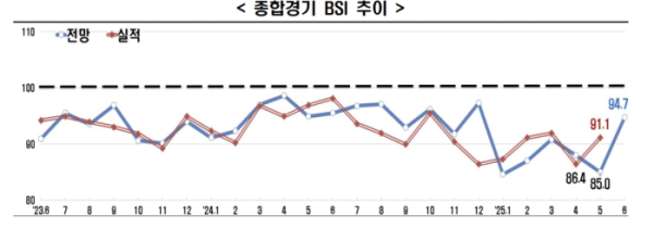 지난달(85.0)과 비교하면 9.7포인트 오른 수치로, 2023년 3월 이후 2년 4개월 만의 최대 상승 폭이다.